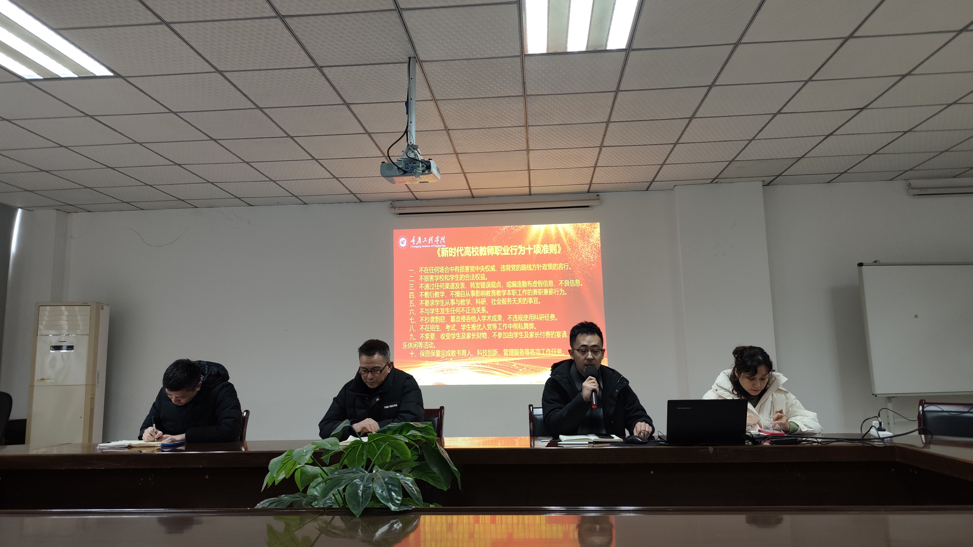 (图/文 办公室 李克)2 月 21 日,管理学院在第三教学楼 602 开展师德师风培训会,全体领导及教职工参会,由党总支书记尚伟主讲。