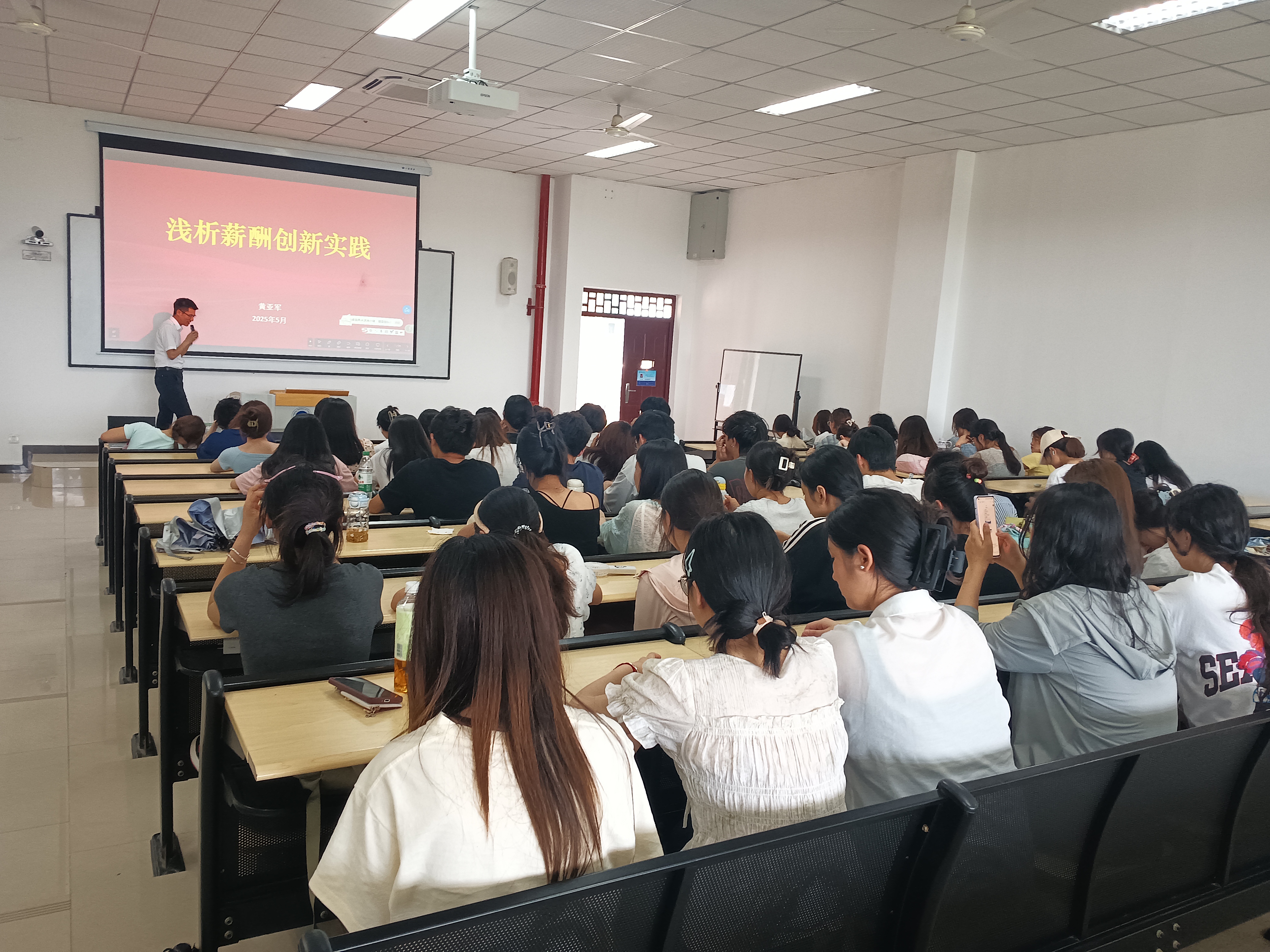 (文 管理学院/人力资源系 邓艳) 为进一步提升学生对薪酬管理前沿理论的理解及实践应用能力,管理学院人力资源系邀请亲禾投资集团人力资源部总经理黄亚军于5月21日在6304开展了题为“探索薪酬管理新思维”的讲座。22级人力资源管理专业全体同学参加了本次讲座。