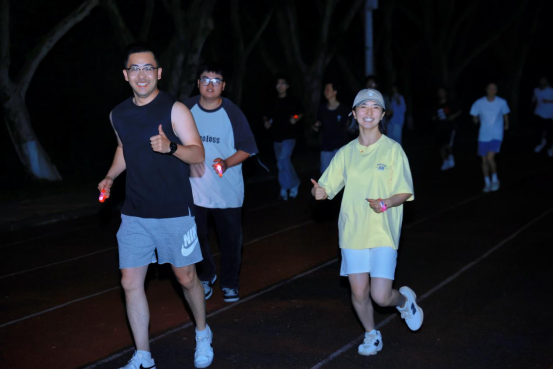 随着发令枪响,参赛同学们佩戴荧光手环,沿着校园规划的路线快乐出发。活动全程设置趣味打卡点,参与者们在欢声笑语中完成了1.5公里的慢跑。夜色中跃动的荧光,不仅点亮了校园,更展现了新时代大学生昂扬向上的精神风貌。