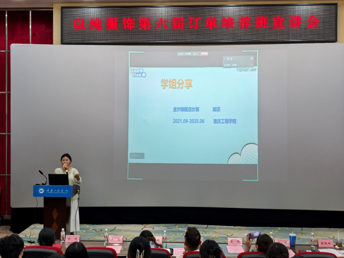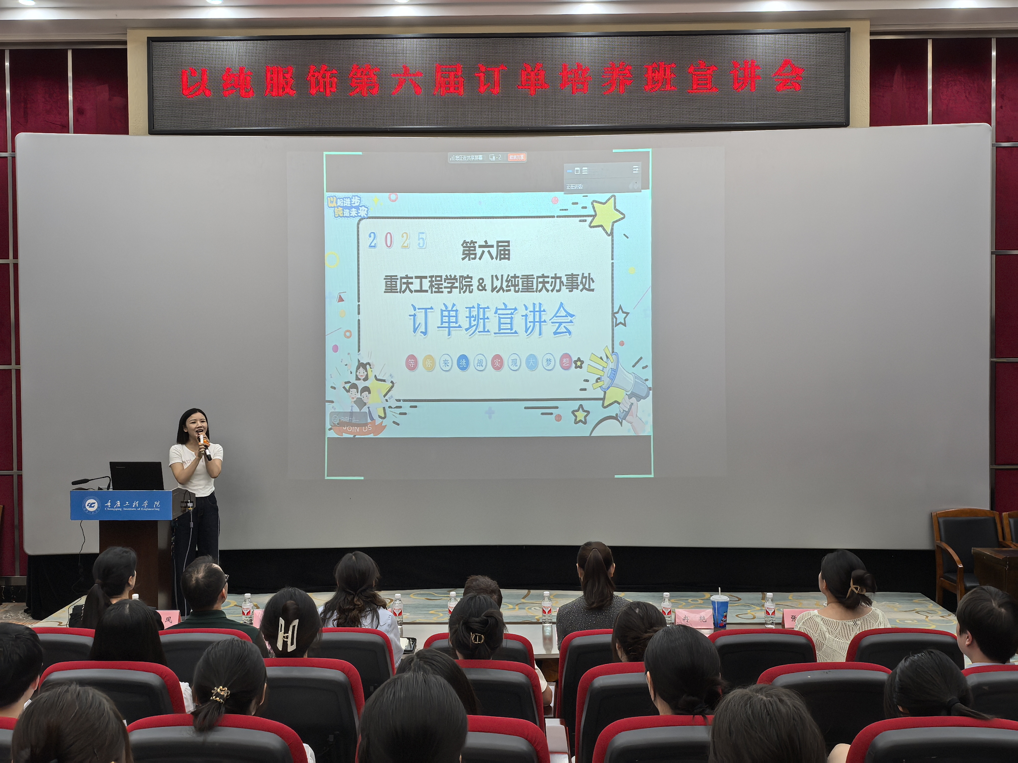 接下来以纯重庆办事处人才组经理冉艳进行了订单班宣讲。冉经理介绍了以纯的发展历史、经营范围、经营理念,以及订单班培养模式、薪资待遇、晋升通道、“纯星人”计划等,让同学们和以纯服饰有了近距离的接触,也对以纯订单班有了全面的认识。冉经理希望大家能加入以纯实现自己的梦想,也希望大家能和以纯一起共同成长,把握好机会,在以纯开心工作、快乐生活、成就自我。