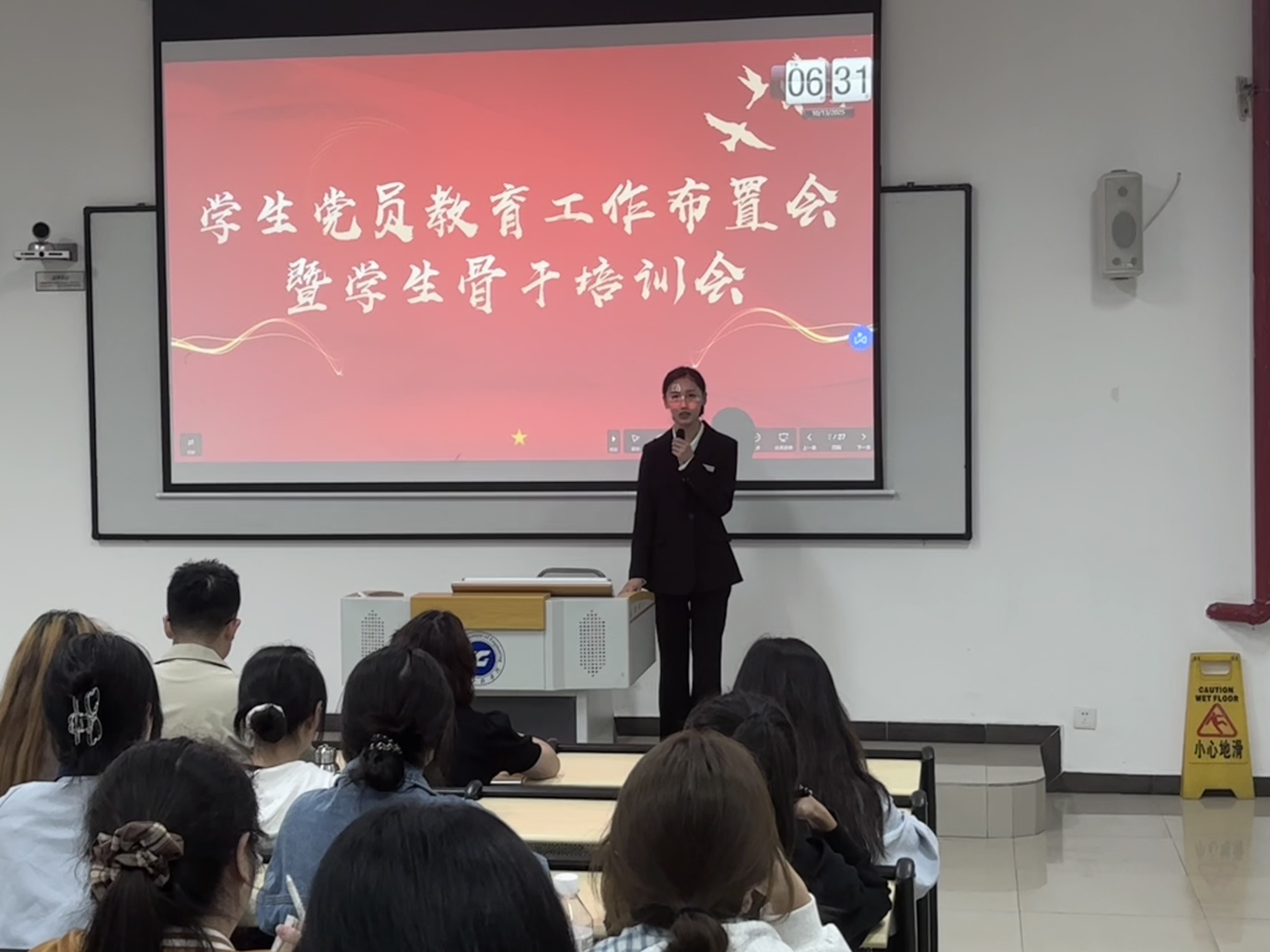 本网讯(图/文 邓涵尹 学生党教中心)为增强数字经济与管理学院学生党员实践教育建设,深入学习宣传贯彻党的精神,引领新时代青年,组织动员学生党员,以实际行动书写热血青春。10月13日晚,数字经济与管理学院党教分中心于第六教学楼开展“学生党员教育工作布置会暨学生骨干培训会”学习活动。本次活动由我院党教分中心办公室干事余亚兰主持,共计50余名学生骨干参与。