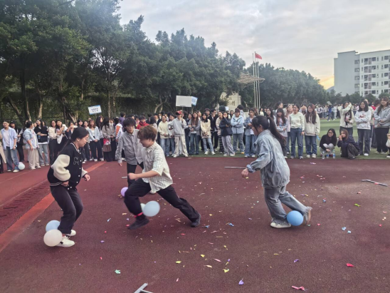 赛场上,参赛选手团结协作、奋勇争先;赛场边,拉拉队呐喊助威、气氛热烈。尤其在拔河比赛中,队员们紧握长绳,齐心协力;终极踩气球项目则充满趣味与挑战,引得阵阵欢笑。