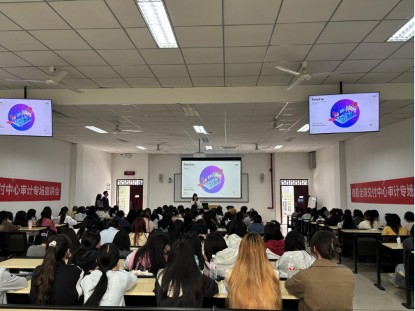 本网讯(文/图 就业科 王聪)2025年10月23日下午,德勤会计师事务所在我院举办专场招聘会,吸引近200名财务管理专业学生参加。