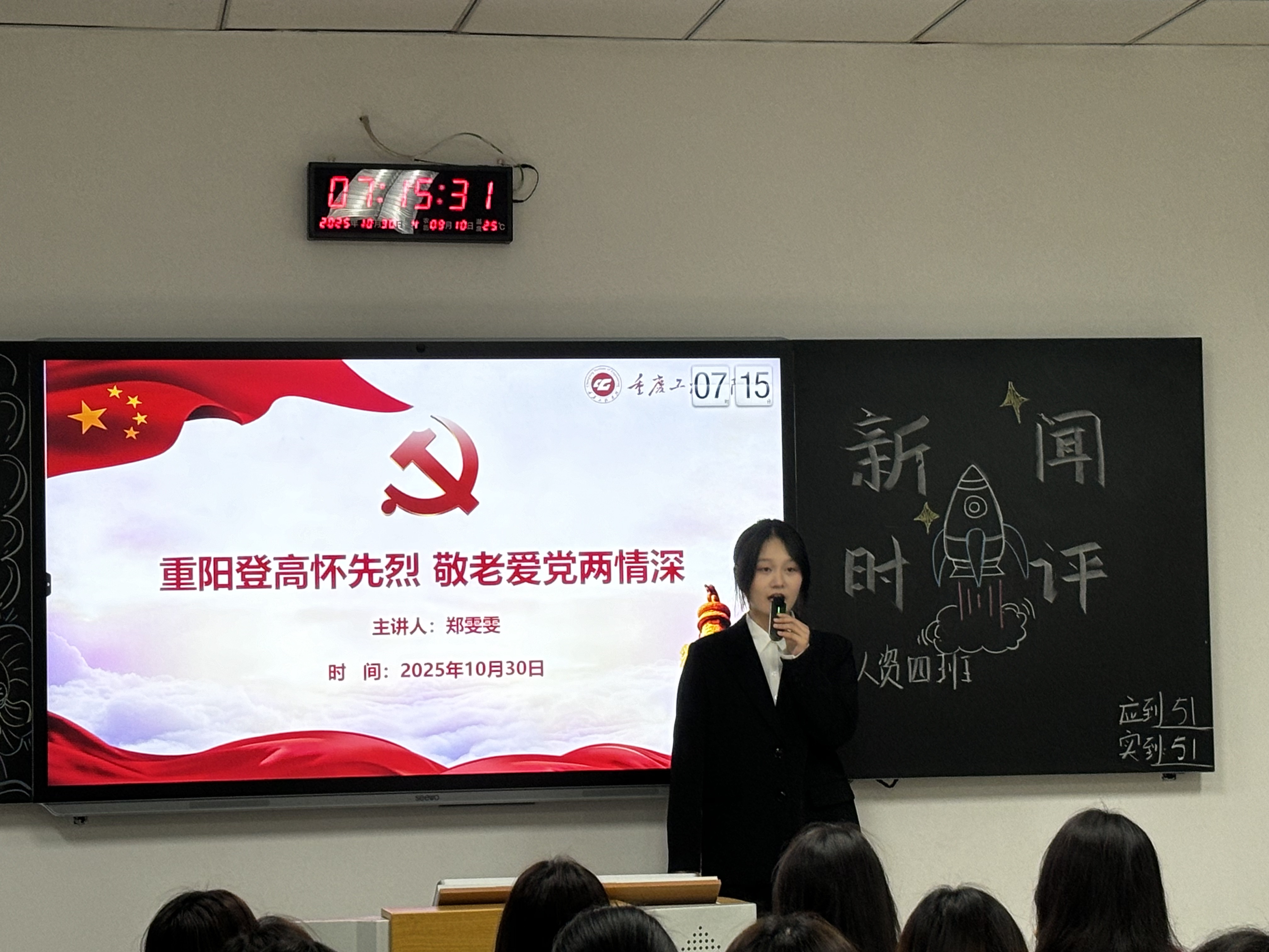 【七培四创】我院党总支开展“大学生微党课”进班级活动之“重阳登高怀先烈,敬老爱党两情深”