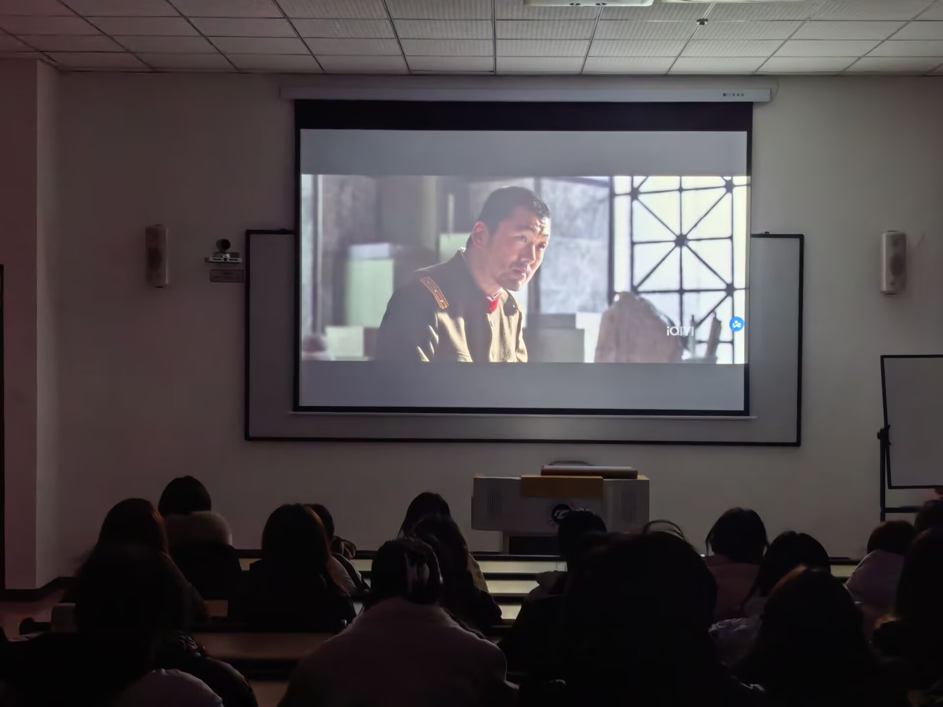本次展播影片以1937年南京大屠杀为历史背景,聚焦“吉祥照相馆”里的避难者们冒死保存日军屠城罪证底片的故事。影片通过小人物在战火中的生死抉择,生动还原了“京字第一号证据”的真实由来,让尘封的历史以影像的形式鲜活呈现。观影过程中,现场同学全神贯注,被影片中“照片比命重要”的震撼台词与角色们舍生取义的情节深深触动,不少同学眼含热泪,内心满是对遇难同胞的痛惜与对革命先辈的崇敬。