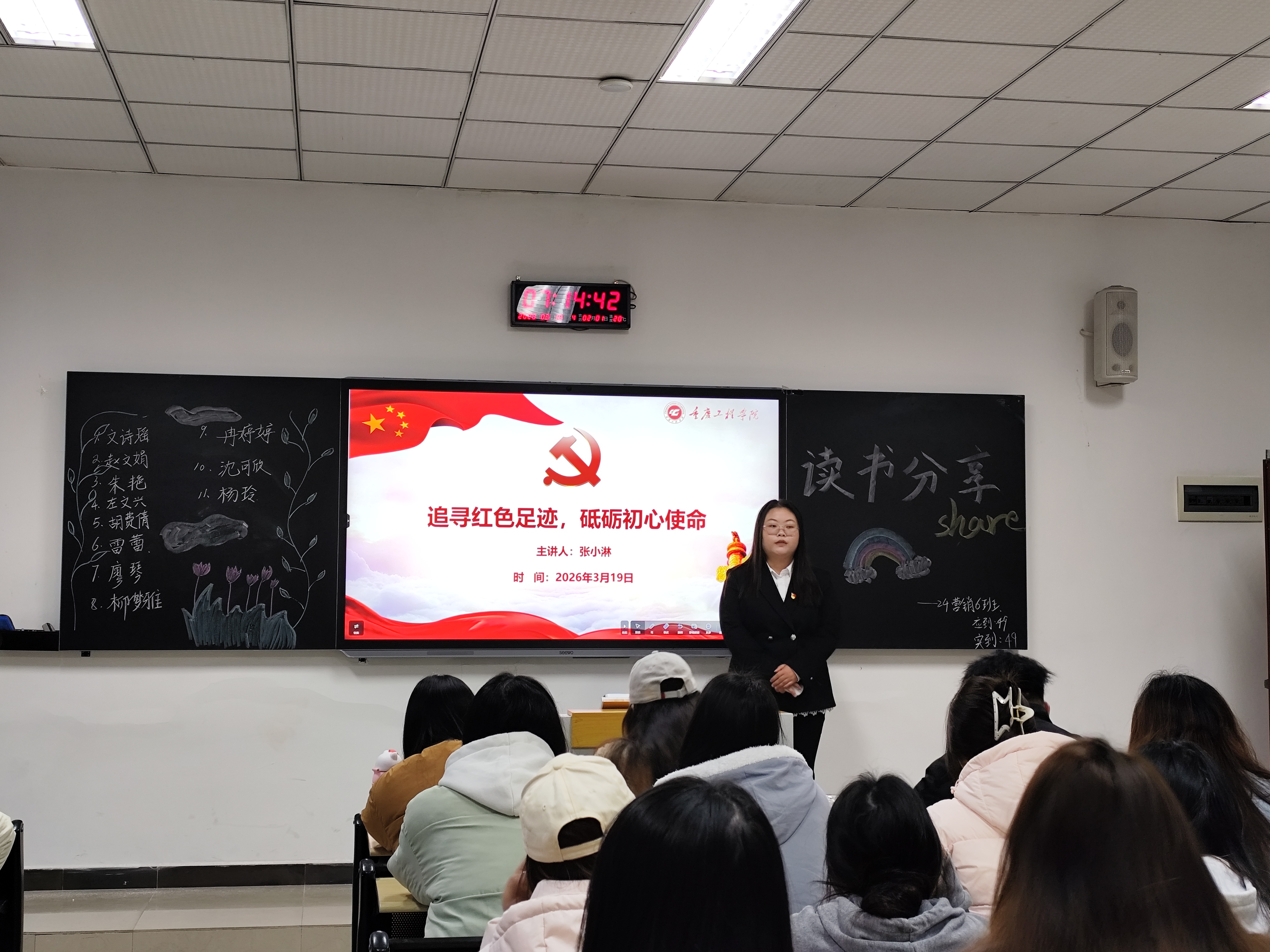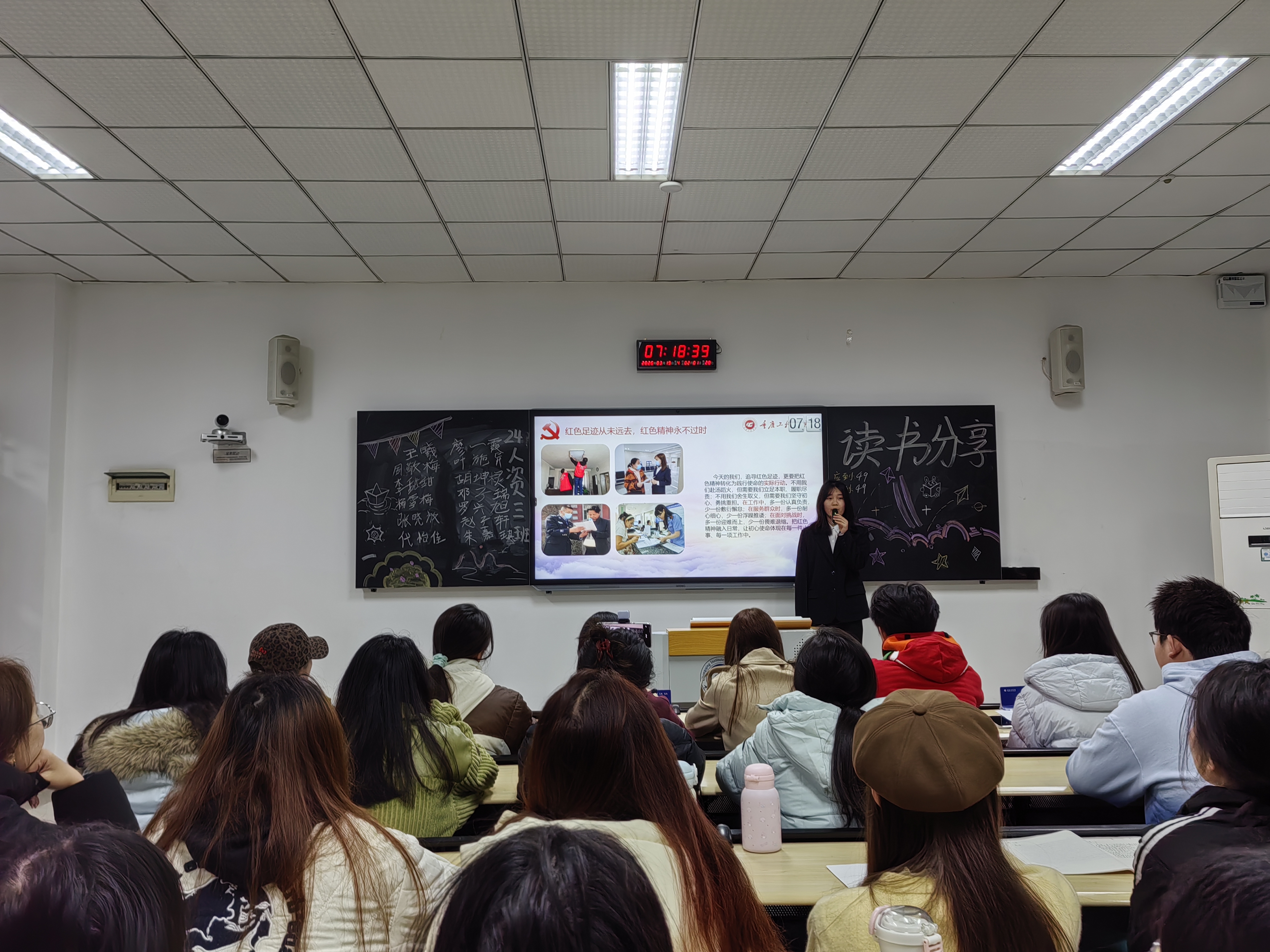 本网讯(文/李东洪 图/贾慧 学生党教中心)为深入学习贯彻党的创新理论,传承红色基因、赓续红色血脉,3月19日上午,数字经济与管理学院学生党总支于第六教学楼开展“大学生微党课”进班级活动,本次活动由李佳欣、罗婧芯等八名学生党员以“追寻红色足迹,砥砺初心使命”为主题进行宣讲。