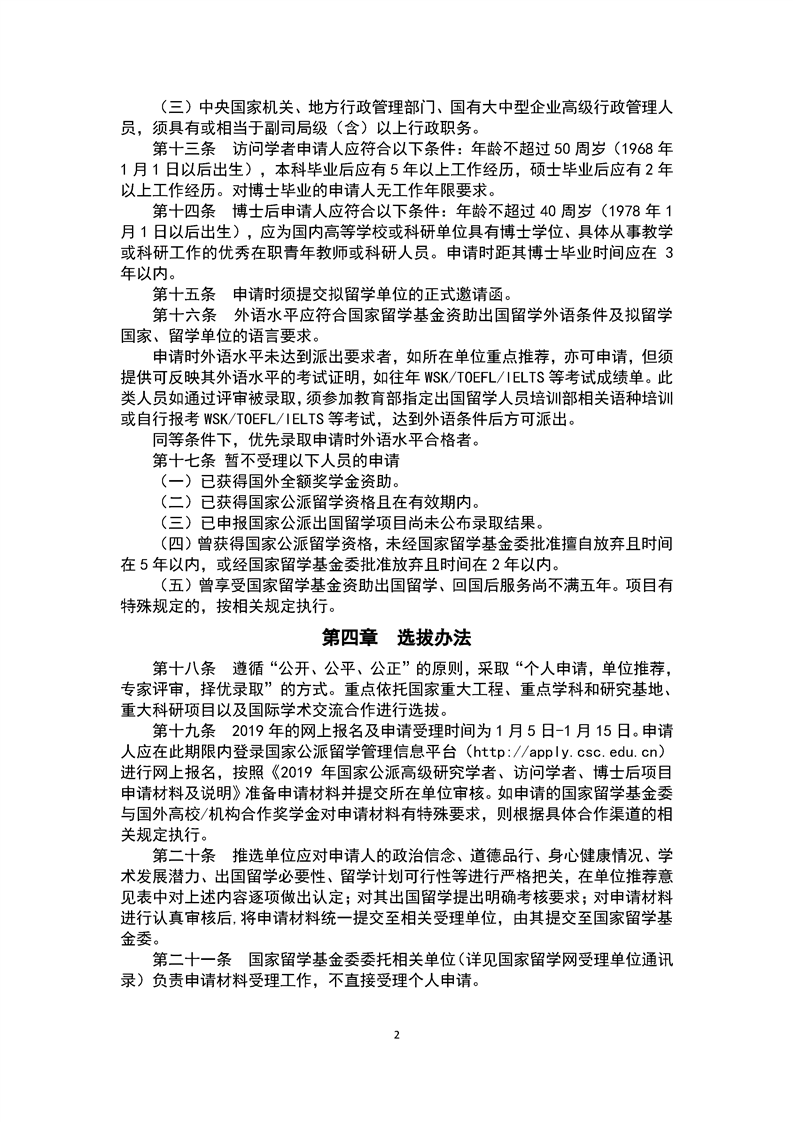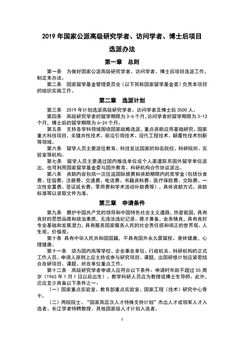 2019年国家公派高级研究学者、访问学者、博士后项目选派办法