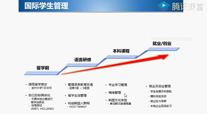 首先晏主任给我们讲解了韩国的文化和饮食习惯,让我们更加了解韩国。然后晏主任重点介绍了去韩国留学的相关事项,对留学韩国的相关问题进行了精彩而详细的讲述,从今年的留学趋势讲到留学韩国的优势,从韩国全州大学的图书馆和寝室到就业方向的选择。最后她表示非常支持同学们去韩国留学,去韩国留学不仅有助于培养大家的独立性,还能丰富大家的学历,让同学们未来的生活更加多姿多彩。