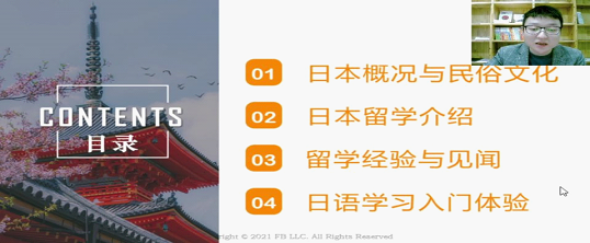 本网讯(图文/杨思锐)为加快我校国际化人才培养质量,提升学校国际化氛围,我校国际合作与交流处于2021年4月7日采取线上直播的方式举办了日本民俗文化与日本留学经验分享会。