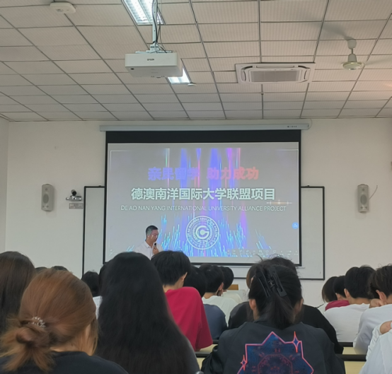 本网讯(大学生科研创新服务中心 文/图 杨灿)为提高学校的国际化办学水平,培养具有国际化视野及国际竞争力的高素质人才,扩展学生赴国外名校访学渠道。我校国际合作交流处诚邀新加坡德澳南洋集团的万九贵老师于101814:00,在六教204教师开展宣讲会。会议 时长一个半小时,近100名同学参加此次活动。
