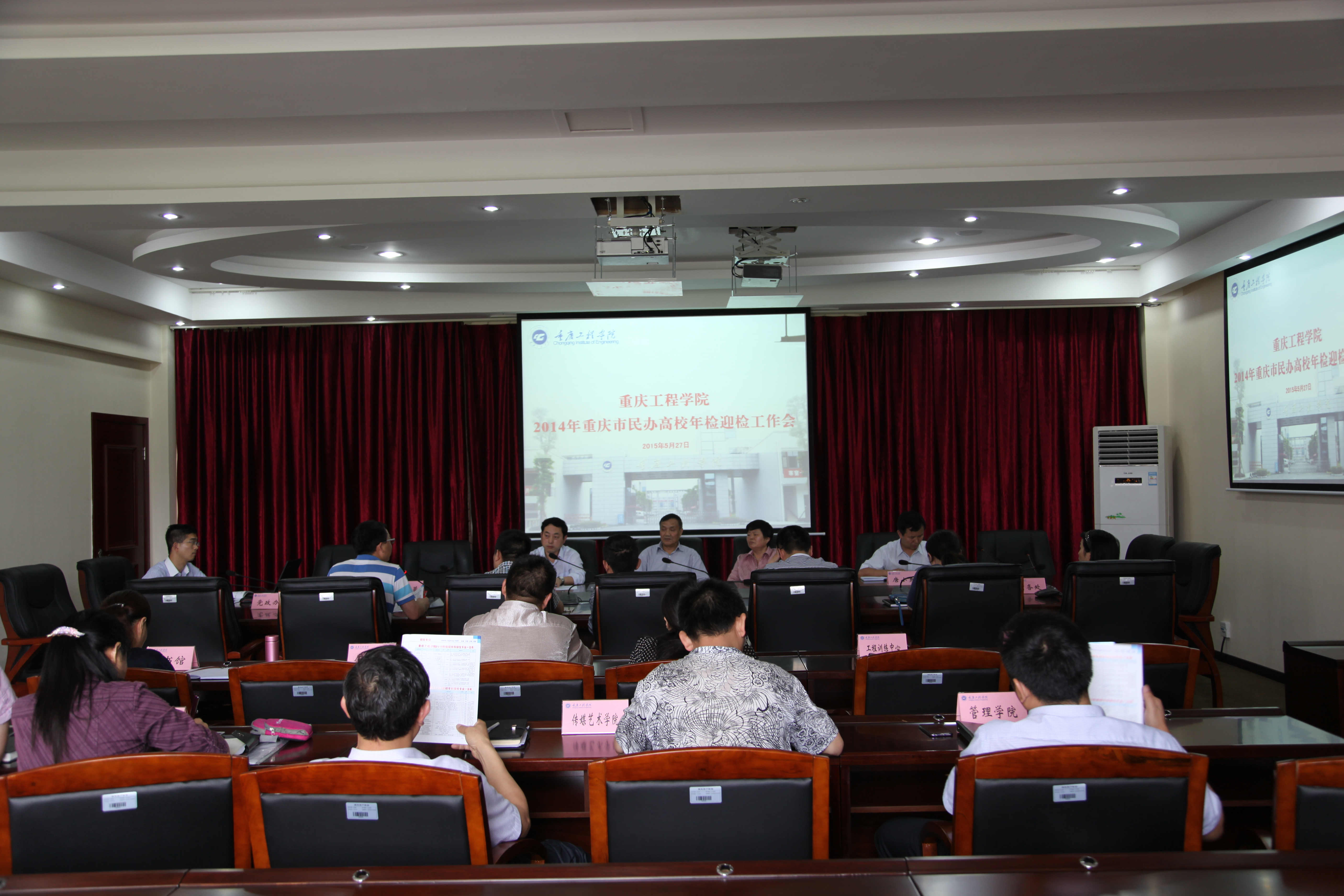 本网讯(软件学院 向阳)2015年5月27日下午,全校各级领导召开2014年重庆市民办高校年检迎检工作会,本次工作会由党政办公室主持召开,由学院党委书记张业平书记主持,以及各个学院书记,部门负责人出席本次年检工作会。