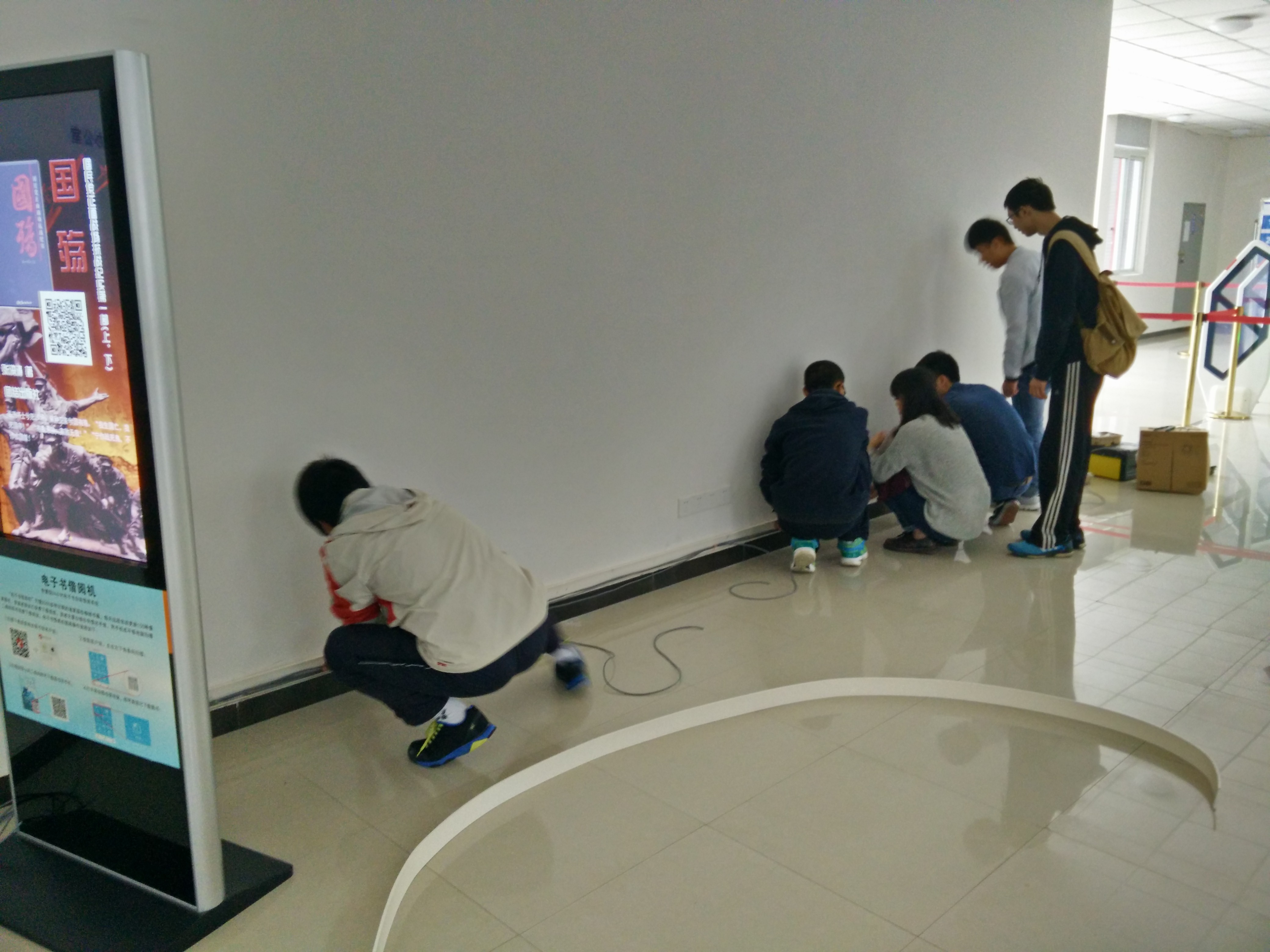 该班学生在曹天人老师的带领下对图书馆进行了现场勘察工作,了解现场需求,并在信息中心指导下与图书馆老师进行了沟通,做好了前期相关准备工作。经过21号到28号的现场勘察,第一小组的同学在28号开始动工,其余各小组也在相应的时间里依次开工。本项目从2015年10月28日将持续到2015年11月,历时1个月,通过该项目实施,学生能在真实项目实践的氛围中解决项目中遇到的问题,有助于专业技能和职业素养的提升。