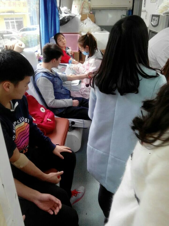 本网讯(校团委 黄涛)根据我校“争当蓝色引路人,争做时代活雷锋”志愿服务月的整体安排,2016年3月30日,我校青年志愿者协会与重庆市血液中心联合举行“让雷锋精神在无偿献血中绽放光芒”主题活动在一食堂前举行,本次献血活动共有378名师生员工报名参加,最终326人通过献血体检,成功献血共计482个单位(每单位=200毫升)。