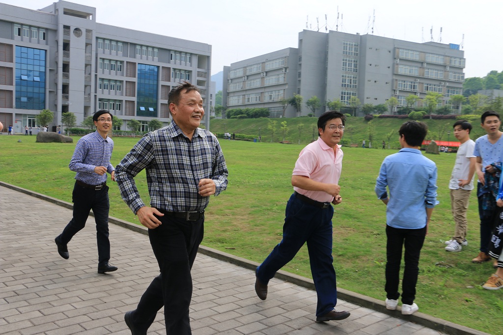 本网讯(学工部 李婷)春暖花开四月天,正是体育健身时。4月13日下午的南泉校区,天气晴朗、人头攒动,第二届体育健身节开幕式暨校园迷你马拉松青春跑活动在行政楼前隆重举行。校长唐一科、党委书记兼副校长张业平、副校长程昌华、副校长王琼花、校党委副书记盛友兴、工会主席冉启蓉、校长助理唐小勇出席。