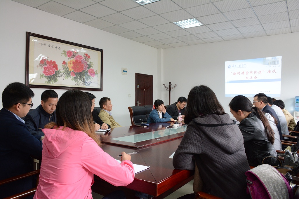 会上,软件学院石磊老师从课程设计、课前组织、课堂实施、学生反馈等方面分享了自身实施翻转课堂的经验。信息中心皮小军主任介绍了学校网络教学平台在实施翻转课堂教学方面的技术支持。与会的其他教师从视频制作、课程设计、课堂教学组织管理等方面谈了自己的看法,并就相关问题提出意见和建议。