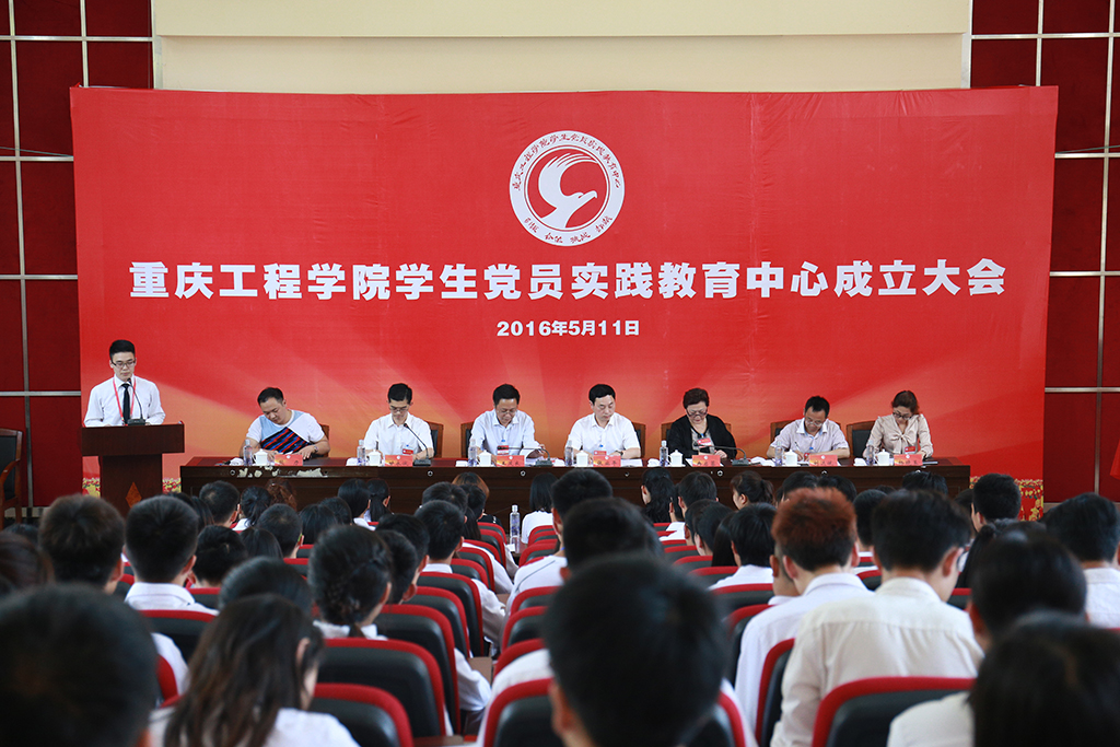 本网讯(组织部)在建党95周来来临之际,在全党深入开展“两学一做”学习教育之际。备受关注的重庆工程学院学生党员实践教育中心成立大会,于2016年5月11日下午14:30分在阶梯报告厅隆重召开。市委教育工委组织干部处副处长王茂良亲临大会,学校党委书记兼常务副校长张业平同志,纪委书记兼工会主席冉启蓉同志出席大会,大会由党委委员、组织部部长甘永诚同志主持。
