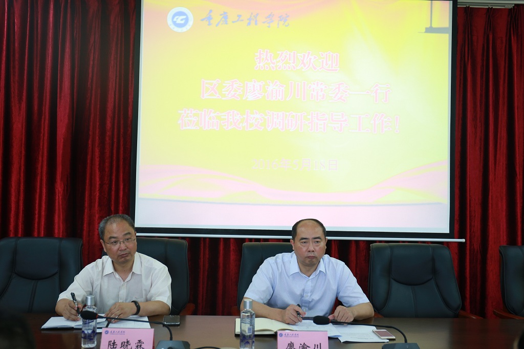 本网讯(党委统战部 谭华龙)5月18日,巴南区委常委廖渝川一行来我校调研指导工作。我校党委书记兼副校长张业平陪同调研。