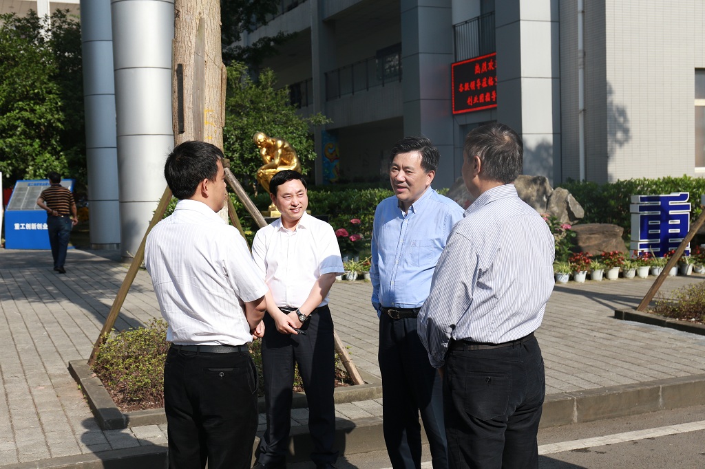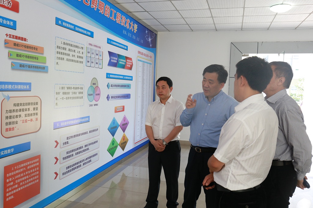 本网讯(党政办 党委宣传部)五月的南温泉艳阳高照,立夏的花溪河畔郁郁葱葱,美丽的重庆工程学院正阔步前行,为推动民办高校创新发展、特色发展、内涵发展,5月11日,市教委主任周旭、副主任邓睿一行到我校调研指导工作,市教委办公室、发展规划处、人事处、财务处、高教处、科技处、招考处、民办处主要负责人参加调研,学校董事长王万均、校长唐一科教授、党委书记兼常务副校长张业平陪同调研。