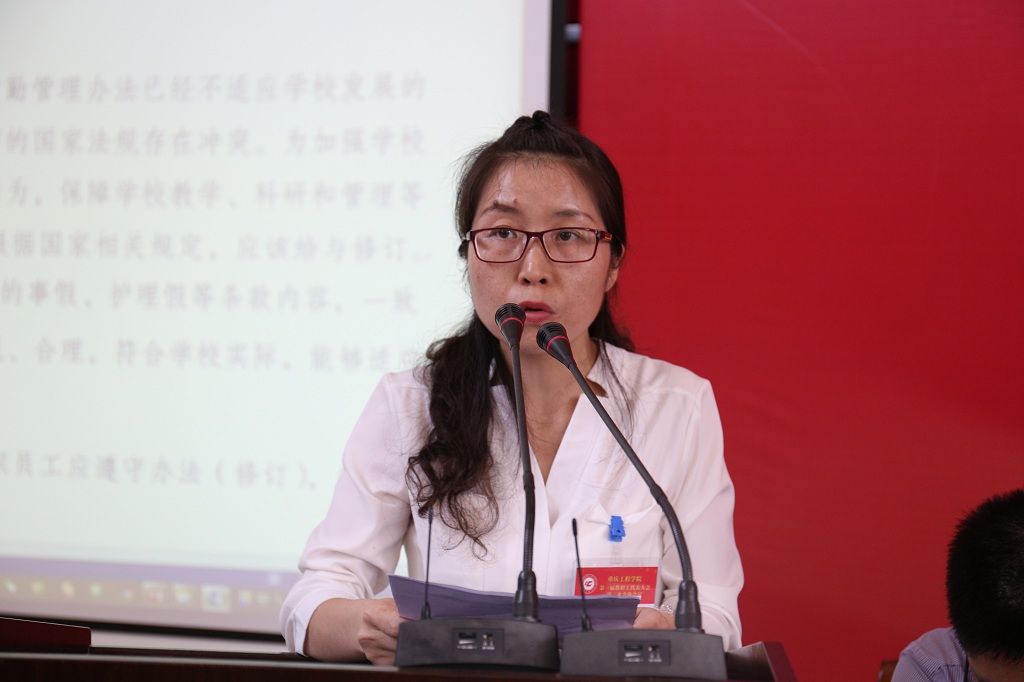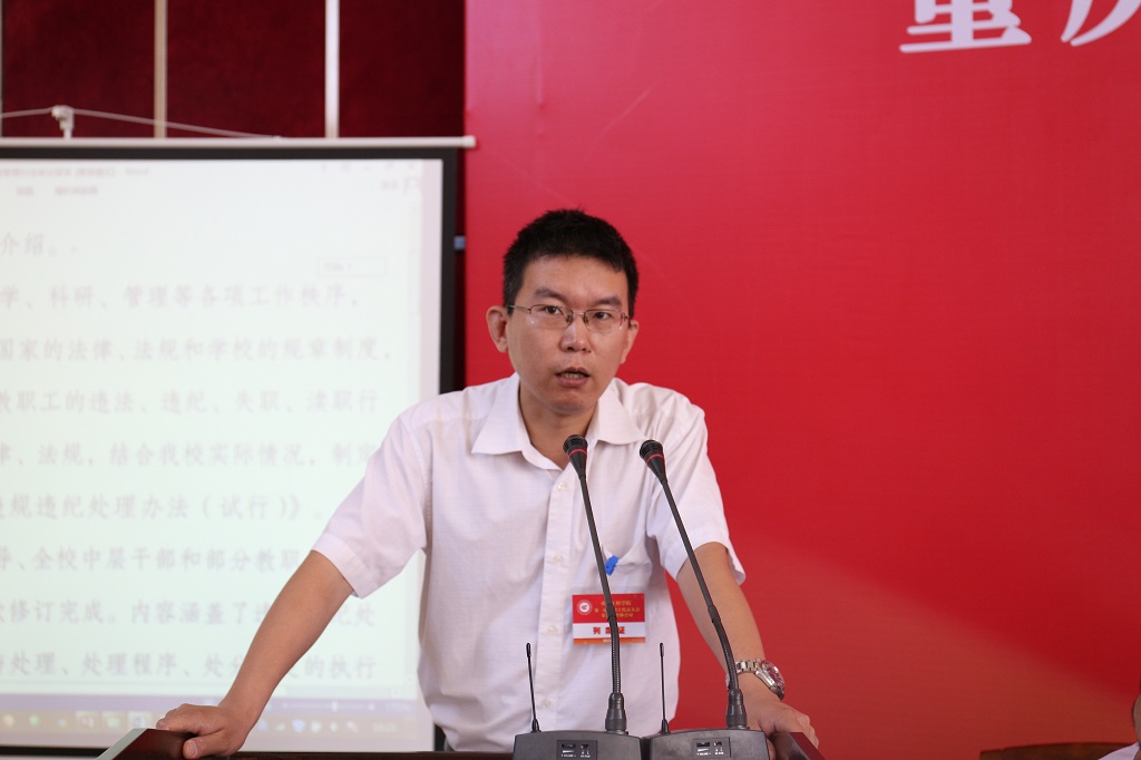 受学校委托,赵鹏涛同志向大会作了《考勤管理办法修订》情况报告和《教职工违纪处分办法》起草情况说明。