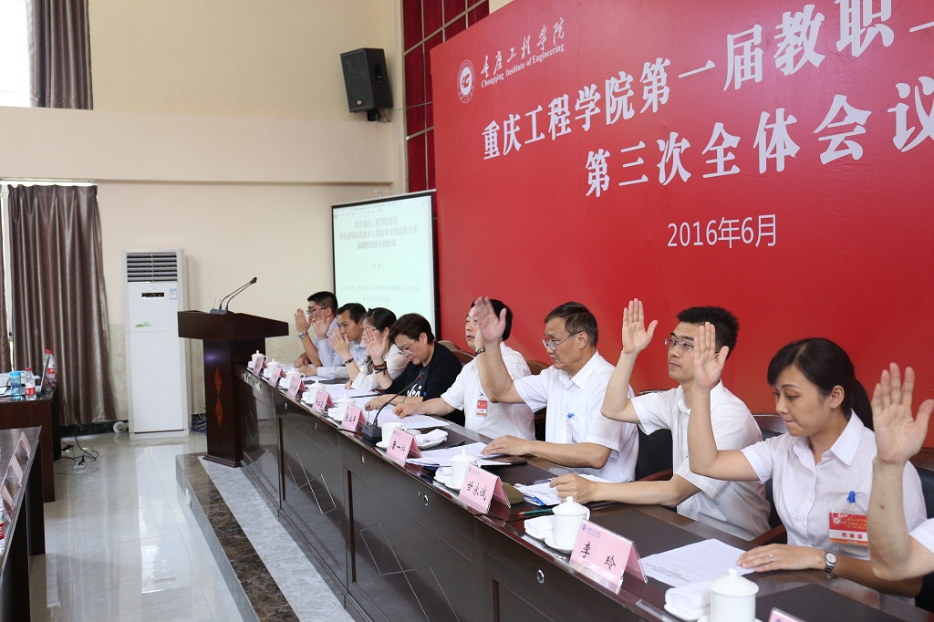 本网讯(校工会\党政办\党委宣传部)六月的巴渝大地,温度高悬、暑气蒸人;盛夏的重工校园,枝繁叶茂、勃勃生机。备受广大教职员工关注、期盼的重庆工程学院第一届教职工代表大会第三次全体会议,6月5日在学校阶梯报告厅隆重召开,来自全校各级部门的65名职工代表(实际出席63人,2人因病因事请假),承载着全校600余名教职工的重托参加大会——建言献策、“共商校是”。