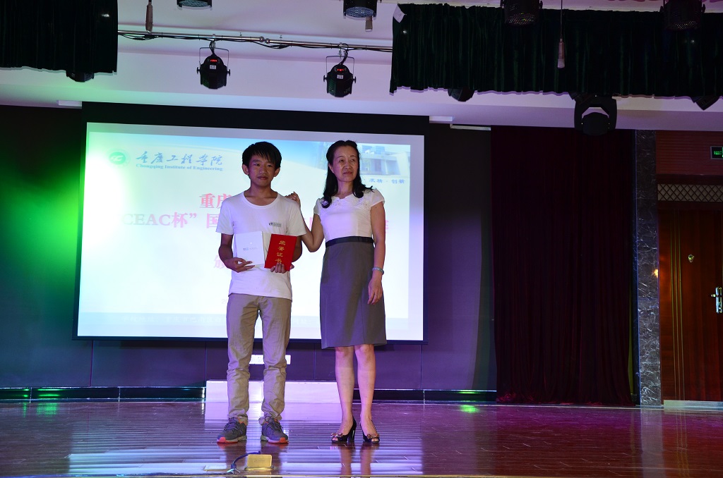 本网讯(双桥新闻传媒中心 文/龚丹 图/熊俊)2016年6月15日下午,重庆工程学院“CEAC杯”国家信息化应用能力大赛颁奖仪式在双桥校区报告厅举行。党委副书记兼双桥校区管委会主任冉维新、校长助理杨桂出席了仪式,并为获奖选手颁奖。