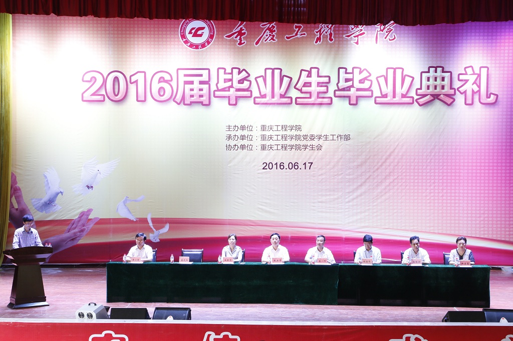 本网讯(学工部\党委宣传部)“一朝师生情,终生缅于怀;学子闯天下,母校候佳音”,又到一年毕业时,难说分离诉再见,6月17日上午9:00,学校在学术报告厅隆重举行2016届毕业生毕业典礼。校领导唐一科、张业平、程昌华、王琼花、冉维新、冉启蓉、唐小勇出席典礼,典礼由校党委副书记盛友兴主持。各职能部门、二级学院负责人,教师代表、毕业班辅导员及全体毕业生参加典礼。
