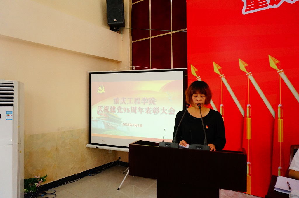 冉维新副书记宣读《中共重庆工程学院委员会关于表彰先进基层党组织和优秀共产党员、优秀党务工作者的决定》。决定指出,为表彰先进、弘扬正气,激励各级党组织和广大共产党员、党务工作者在学校发展建设中创先争优、建功立业、爱岗敬业、无私奉献。党委决定对一年来在工作中取得优异成绩的1个先进基层党组织、28名共产党员、3名党务工作者予以表彰,分别授予先进基层党组织、优秀共产党员、优秀党务工作者荣誉称号。