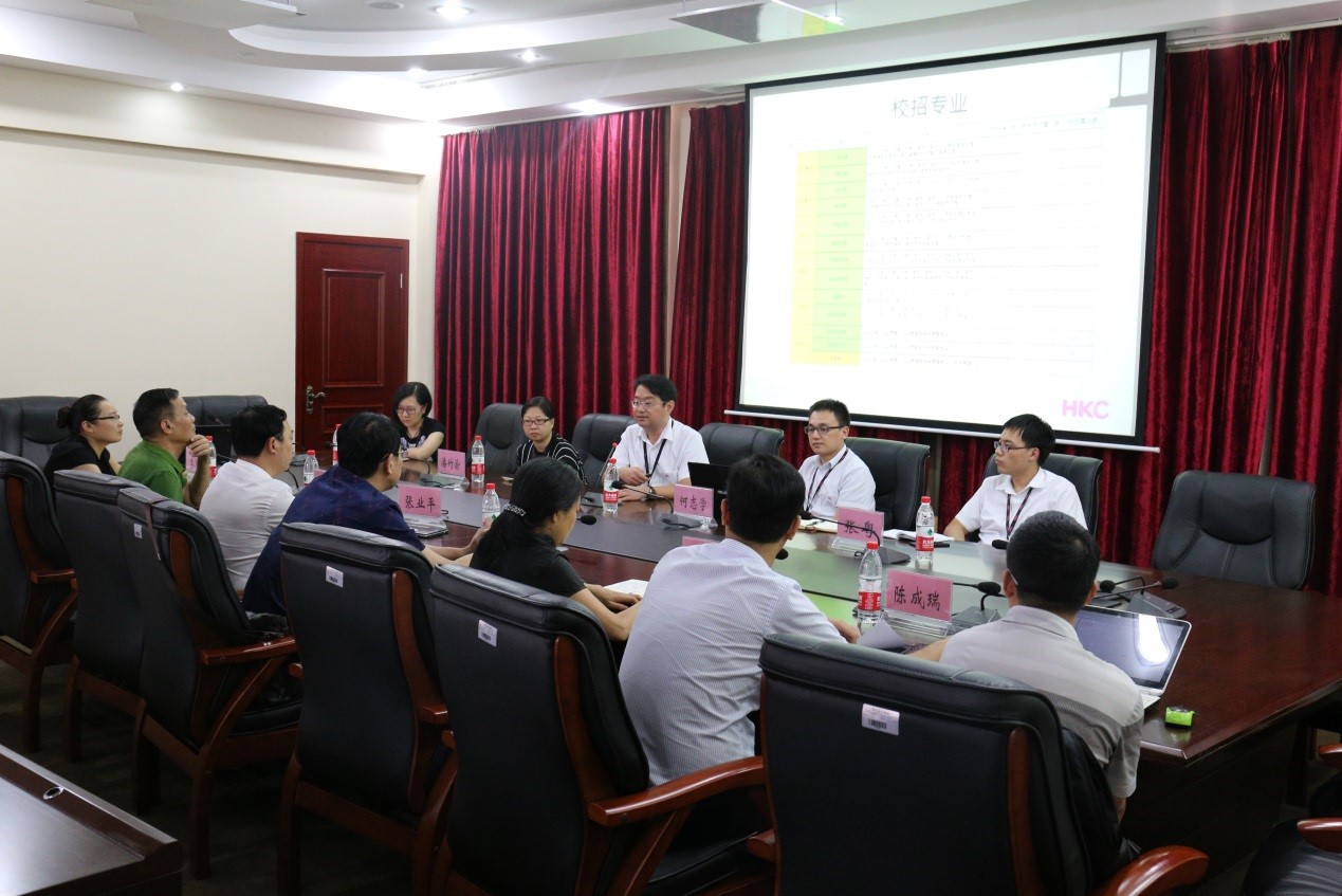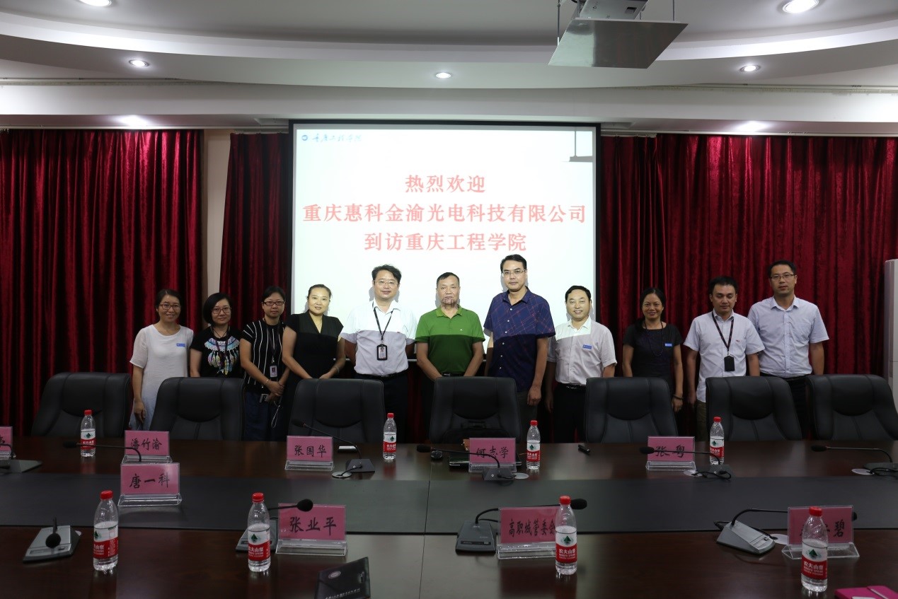 会上,张业平书记首先代表学校对惠科金渝张国华一行的来访表示热烈欢迎,并详细介绍了重庆工程学院的发展历史和成果,对学校专业设置、应用型人才培养特色和产教融合工作做了重点说明,他表示校企合作、品牌共建一直是学校的战略重点,双方的合作在区位、专业、政策方面具有得天独厚的优势。张国华先生介绍了惠科金渝光电有限公司的发展历史、公司业务和技术实力,并就公司员工培养体系做了展示说明,表达了与学校在人才培养与输送等多方面合作的愿望。