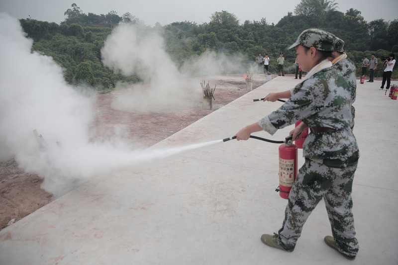 接着,消防官兵们向军训新生们细致讲解了灭火器的使用方法,并作了现场示范。随后,参加军训的学生代表进行现场油桶灭火体验。