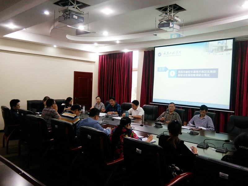 唐一科校长对我校的创新驱动工作提出了要求,全校要认真学习贯彻《重庆市深化体制机制改革加快实施创新驱动发展战略行动计划(2015—2020年)》,提高师生对我市创新驱动发展战略和相关政策的认识,推动我校创新驱动发展战略工作,营造良好创新创业氛围。