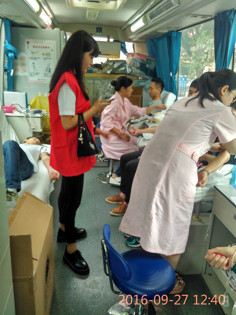 本网讯(校学生会)为弘扬“奉献、友爱、互助、进步”的志愿精神, 9月27—29日,由我校青年志愿者协会与重庆市血液中心联合举办的“无偿献血我争先”活动在一食堂前举行。广大师生积极参加,为无偿献血事业奉献自己的微薄之力。本次献血活动共有632名师生报名参加, 632人通过献血体检,成功献血共计664个单位(每单位=200毫升)。