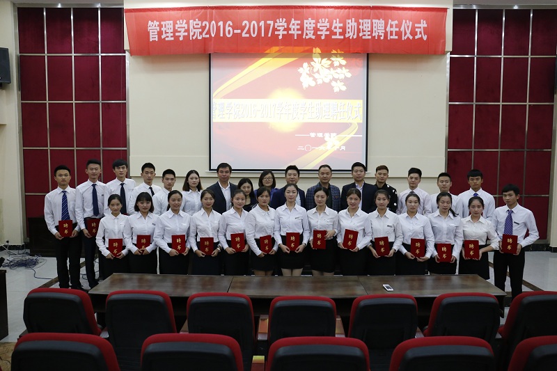 本网讯(管理学院 陈娟)10月13日晚,管理学院在学校阶梯报告厅举行了2016-2017学年度学生助理聘任仪式。校学生处长邹均,管理学院党总支书记熊力参加了仪式。