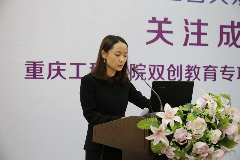 仪式上,重庆工程学院创新创业园李语霖老师首先向大家介绍了学院创新创业园的园区结构以及创新创业训练营的架构和目标。她谈到:“学校建立创新创业训练营的主要目的是为了给广大学子提供模拟的创业平台,能够让学生真正的走出去。”