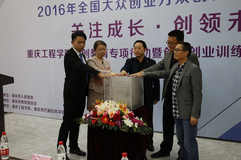 本报讯(大学生新闻传媒中心 魏旭)2016年10月14日下午,2016年全国大众创业万众创新(重庆)活动周——重庆工程学院双创教育专项行动暨创新创业训练营(第一期)启动仪式在我校行政楼阶梯报告厅盛大启幕。校党委书记兼常务副校长张业平及工商界相关人士出席了启动仪式。