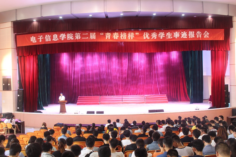 本网讯(电子信息学院 刘顺江)为了进一步营造学习典型、争创先进的浓厚氛围,电子信息学院于10月19日在学术报告厅开展第二届“青春榜样”优秀学生事迹报告会。电子信息学院院长秦安碧、学校团委副书记黄涛、学校素质教育中心副主任黄燕出席了报告会,电子信息学院全体辅导员老师及1000余名学生也听取了报告。