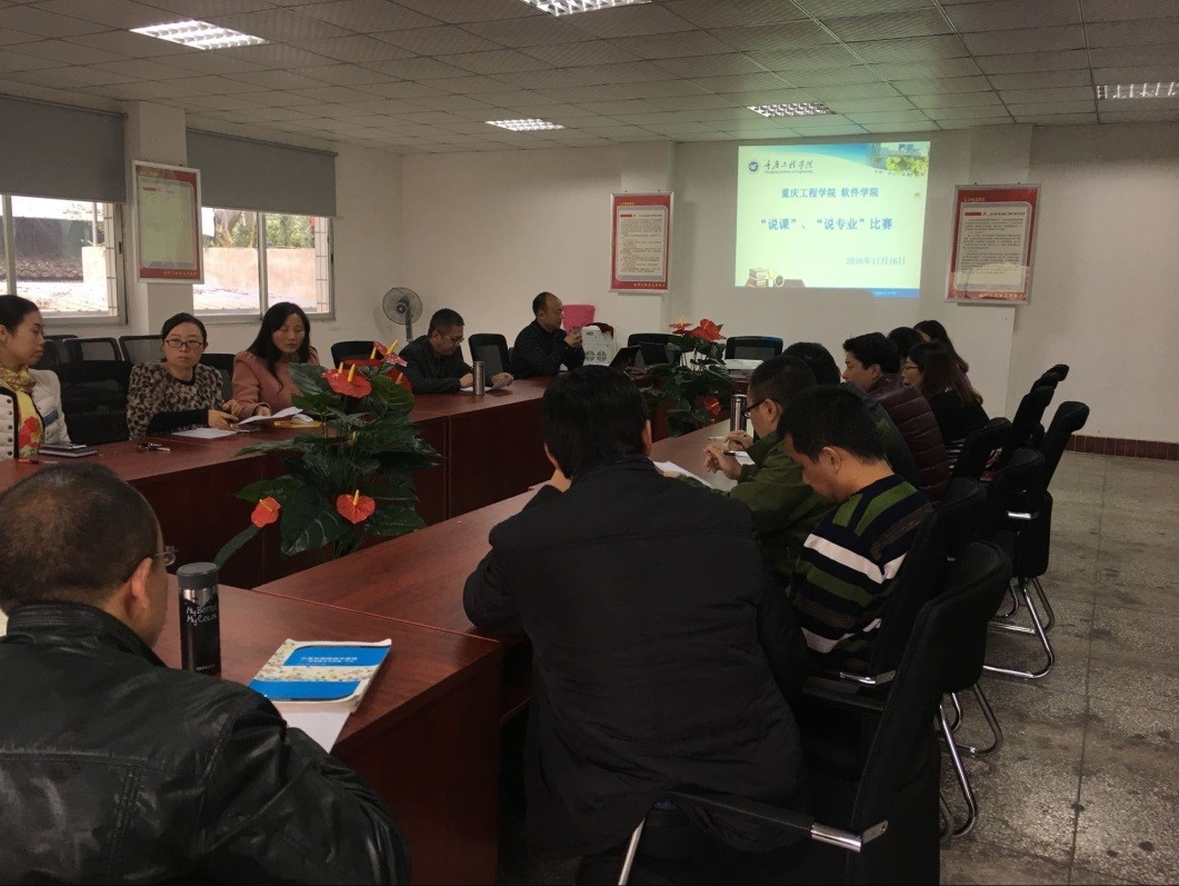 本网讯(软件学院 康曦) 根据《重庆工程学院关于开展2016-2017学年第一学期教学竞赛活动的通知》要求,2016年11月16日13:00,在软件学院副院长陈俟伶主持下,软件学院在第三教学楼3501开展了“说专业”“说课”学院内部初赛。软件学院院长周龙福、副院长陈俟伶、党总支书记杨晓玉、计算机科学与技术专业带头人柏森教授出席了此次竞赛。