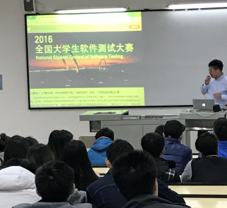 本网讯(软件学院 康曦) 为了让我校学生能在“全国首届软件测试大赛”中取得优异成绩,11月16日,软件学院特邀南京大学何铁科博士为我院学生做赛前动员与辅导。