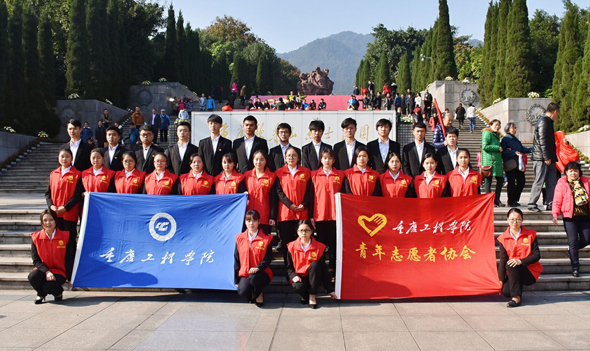 本网讯(校学生会 骆成龙)青山翠柏映丹心,英魂忠烈昭日月。2016年是红岩英烈殉难67周年。2016年11月27日,重庆工程学院青年志愿者纪念11.27烈士殉难67周年祭扫活动在歌乐山烈士陵园举行。