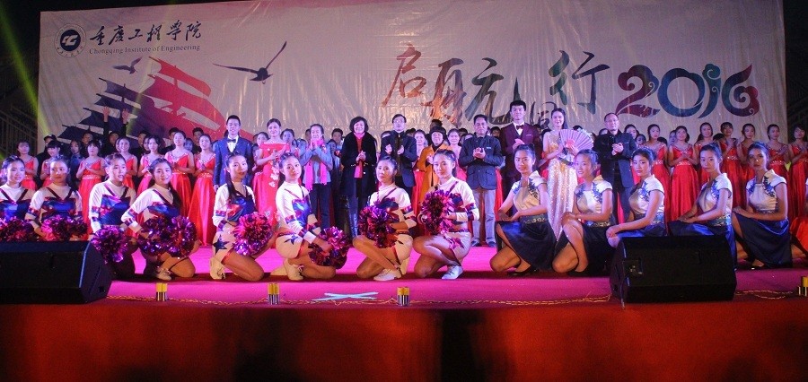 本网讯(新闻传媒中心文/杨蓉 摄/熊英杰 胡鹏 陈瑶瑶)2016年12月1日,重庆工程学院“2016启航·同行”迎新晚会在我校双桥校区隆重举行。重庆市大足区旅游局局长李洪秀、学校党委副书记盛友兴、学校党委副书记兼双桥校区管委会主任冉维新、中国电信股份有限公司大足分公司副总经理江燕等领导和嘉宾出席活动,双桥校区4300余名学生和部分老师及双桥经开报的媒体朋友参加了本次迎新晚会。
