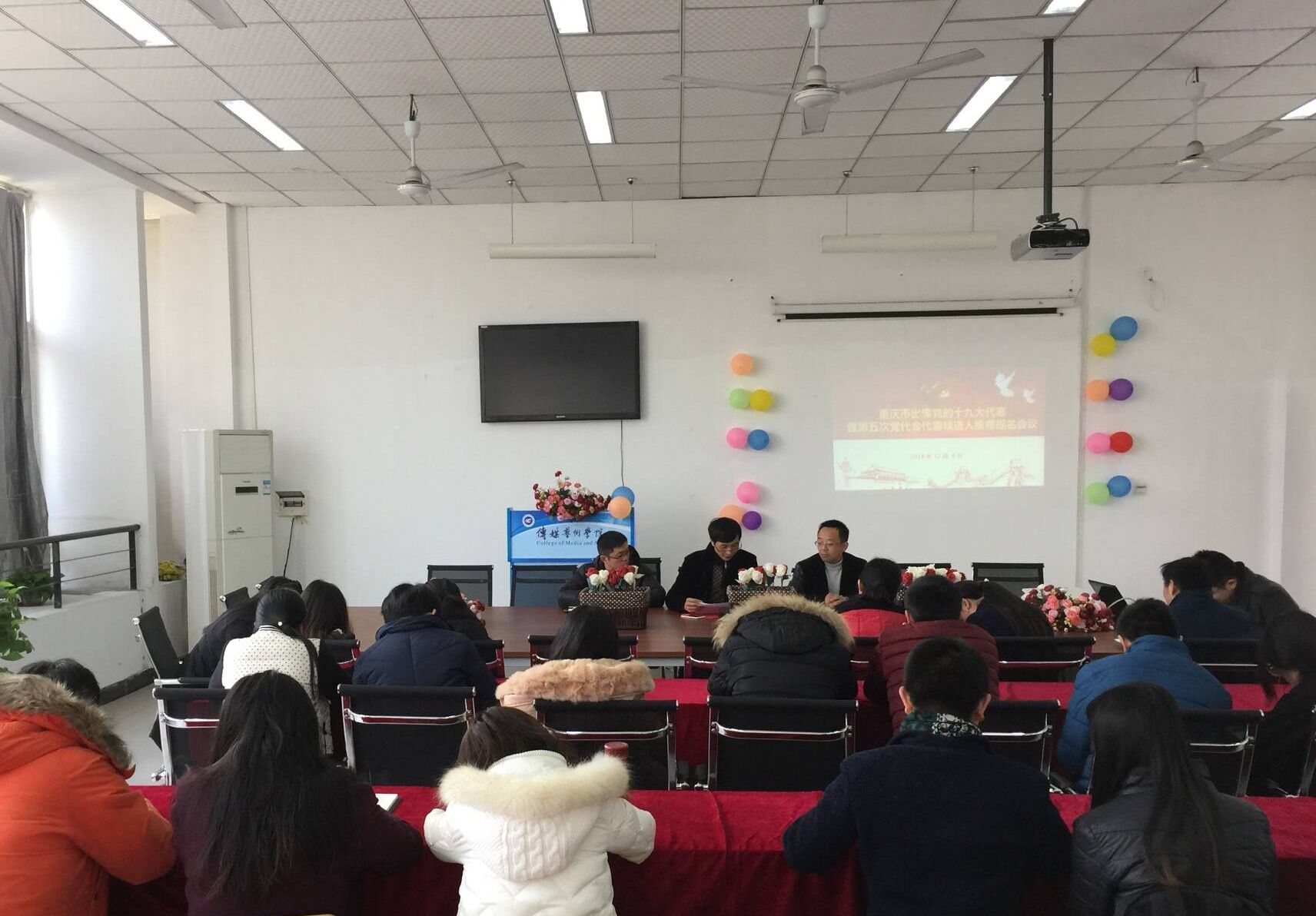 (本网讯 传媒艺术学院 李夏)2016年12月6日,根据中共重庆市委教育工委《关于做好出席中国共产党重庆市第五次代表大会代表选举工作的通知》和《关于认真做好重庆市出席党的十九大代表推荐提名工作的通知》精神,按照学校党委的统一部署,传媒艺术学院教工党支部在5207会议室召开了教师党员大会,做好教工党支部代表推荐提名工作,重庆工程学院党委副书记盛友兴教授出席了本次会议,会议由传媒艺术学院党总支部书记刘达斌同志主持。