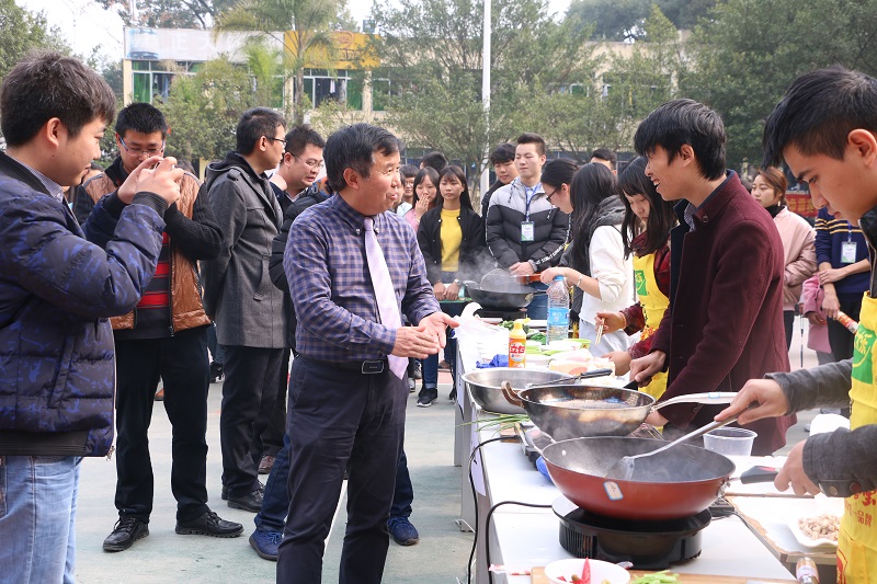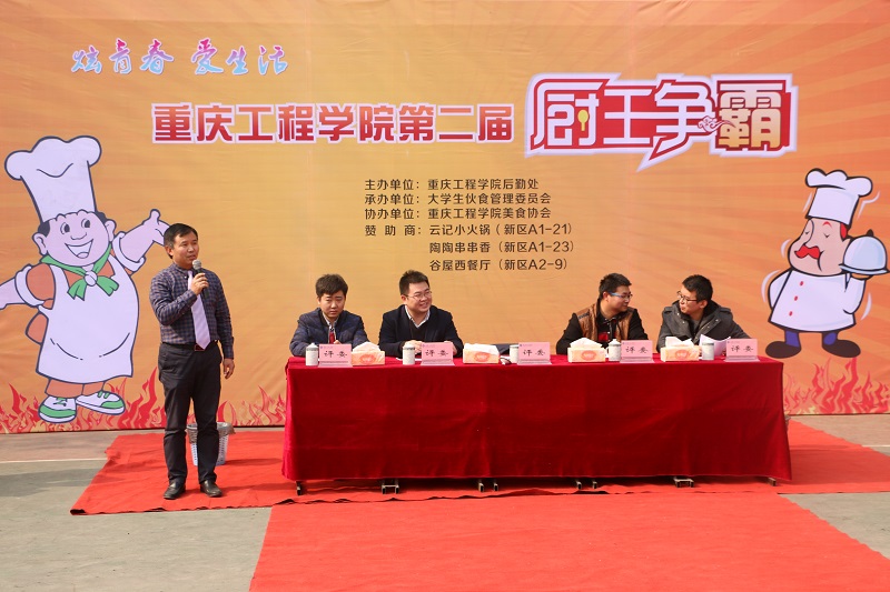 本网讯(文/后勤处 图/新闻传媒中心 余漫莉)2016年12月7日13:00-16:00时,在学校后勤处的精心准备下,重庆工程学院第二届“厨王争霸”大赛在我校彭氏名居篮球场顺利举行。校长助理唐小勇、图书馆馆长潘晓旭,资产处处长赵鹏涛,保卫处处长兼后勤处副处长程国园,保卫处综合办主任罗心智出席本次比赛并担任评委。
