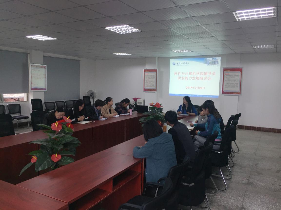 本网讯(软件与计算机学院 图/陈建龙 文/胡海燕)为加强辅导员队伍建设,提升辅导员工作能力,实现辅导员队伍向专业化、职业化、专家化方向发展。2017年3月29日中午,软件与计算机学院全体学工干部在3501会议室召开了辅导员职业能力发展专题研讨会。会议由党总支书记胡海燕主持。