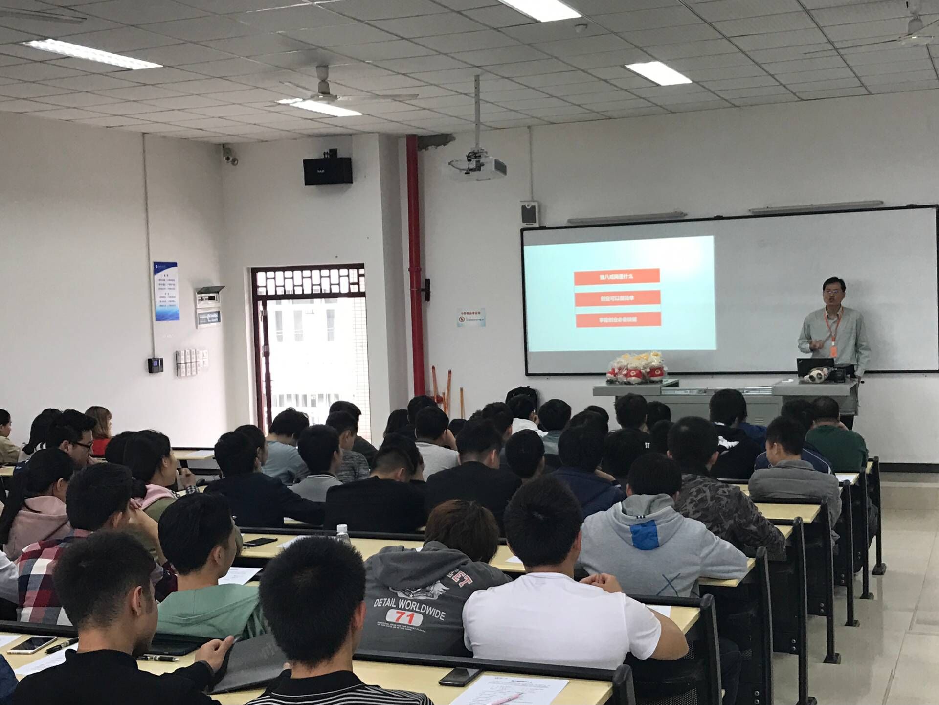 猪八戒互联网学院的郭总首先向同学们介绍了猪八戒网的基本信息,随后,郭总进一步详细介绍了猪八戒网能为大学生创业就业提供的服务与平台:一是猪八戒网提供了全方位的能力展示系统,有助于手握赏金的企业又快又准地找到有想法有能力的同学;二是猪八戒网开通了消费者保障服务,确保网上交易安全,以便同学们更好地锻炼自身,例如设计网店、装修设计、文案创作、软文、编程、起名字等。