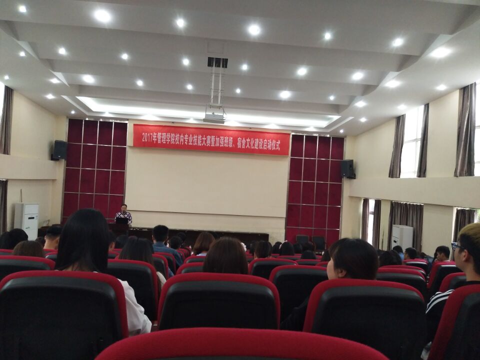 本网讯(管理学院 熊力)4月20日下午4:00,管理学院在学校阶梯报告厅成功召开本学期专业技能大赛暨班级、宿舍文化建设启动会,学院党总支书记熊力,副院长李玲,各专业教研室主任,学生代表近200余人参加,会议由张金波老师主持。