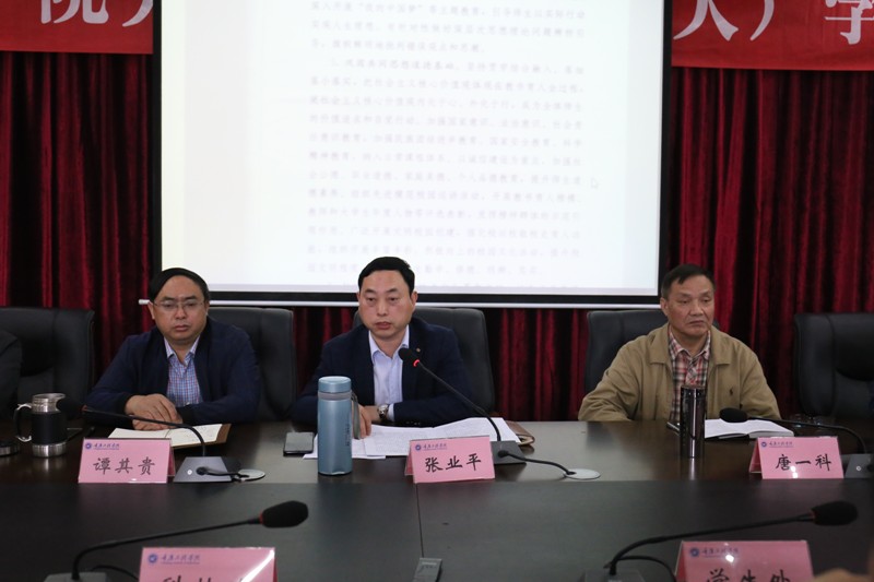 张业平还对高校相关的内容进行了解读说明,重点讲解了基本原则、强化理论武装和思想价值引领、推动大学生思想政治工作改革创新、全面提升高校教师思想政治素质、加强思想政治工作专门力量建设等方面的内容,根据学校实际情况就学校目前存在的问题给大家做了详细的说明。