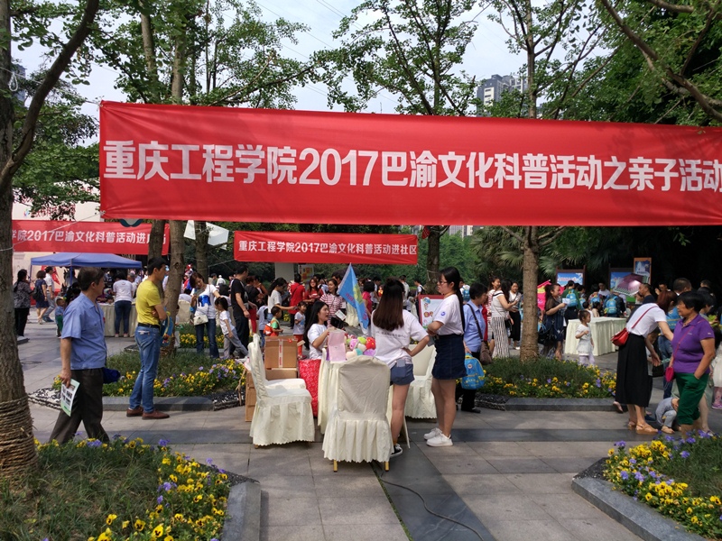本网讯(科技处 李静)2017年5月18日上午,以“巴渝文化”为主题的重庆工程学院2017巴渝文化科普体验活动在巴国城举行,部分幼儿园师生、家长、九龙坡区巴国城社区和科普志愿者共5000多人参加了现场活动。
