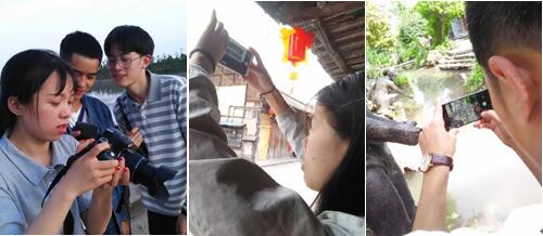 期间,学生们分别去了永安廊桥、桃花源、璧山寺等自然人文景区实地考察;白天在教师的耐心指导下进行速写、摄影、摄像创作,晚上分享学习成果。采风期间,虽然遭遇阴雨天气,但依然无法阻挡学生的创作热情,穿梭在“五步一景、十步一重天”的古镇间,学生们都能认真思考,精选角度,巧妙构图,每一幕都构成一幅幅动人的“风景”。