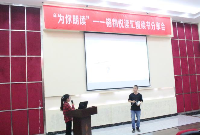 本网讯(电子与物联网学院 刘子菱) 5月31日晚, “格物悦读汇”慢读书沙龙活动暨“为你朗读”读书分享会在行政楼阶梯教厅举行。 据悉,“格物悦读汇”取格物致知之意,倡导自由、专注、好读、乐思,是由热爱读书的学生自发成立,他们爱好文学,崇尚科学,饱含情怀与爱,立志要身体力行,用阅读的魅力感染更多的莘莘学子,从2016年3月开展至今已举办了十一期读书沙龙活动。