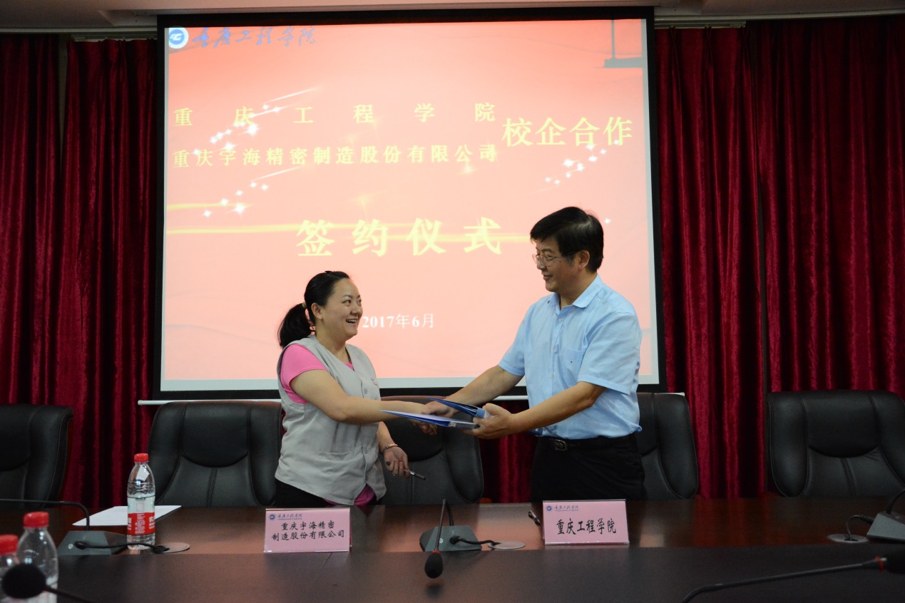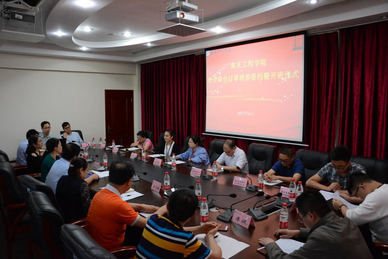 本网讯(电子与物联网学院 陈成瑞)为进一步提高高素质、应用型人才培养质量,电子与物联网学院于6月14日下午2点在第二会议室分别与重庆惠科金渝光电科技有限公司、重庆宇海精密制造股份有限公司、广州粤嵌通信科技股份有限公司、重庆传晟信息技术有限公司举行了校企联合订单人才培养签约仪式。学校副校长程昌华、校企合作办主任秦凤梅、电子与物联网学院院长秦安碧、书记刘子菱、副院长景兴红以及各系部、中心负责人、参会企业负责人出席仪式,仪式由电子与物联网学院实习实训中心主任陈成瑞主持。