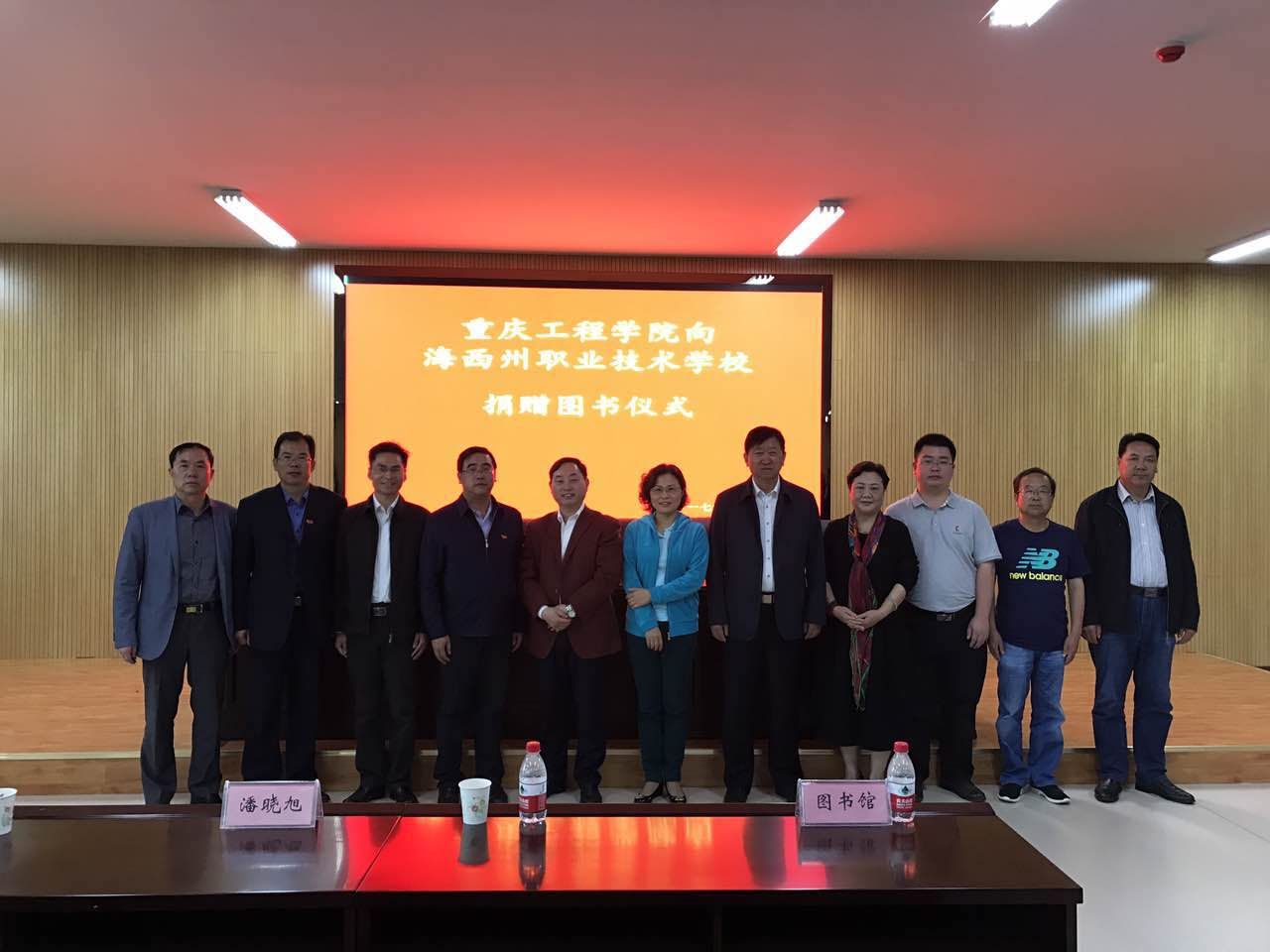 随后,张业平书记代表重庆工程学院向柴达木职业技术学院捐赠了2万册图书。在发言中张书记回顾了对口援助的历史,指出自2014年签署《重庆工程学院青海省西州职业技术学校对口支援协议》之后,除近三年来除援助笔记本电脑外,我校还在信息化建设、实习实训规划、人才培训等方面也做了大量工作,本次又针对资源文献建设做了捐助。他表示重庆工程学院愿发挥自身优势,加强两校在学科建设、专业规划等方面加强交流和合作,为海西州的职业教育发展做出贡献。